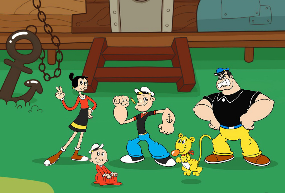 Popeye es joven y ya no muestra interés por Oliva, quien ya no está en peligro y es una mujer independiente y capaz de capturar a Bruto, quien también recibió una “actualización”, que incluye una cara sin barba y un nuevo interés, robarse -ya no a Oliva sino- las espinacas orgánicas de Popeye.