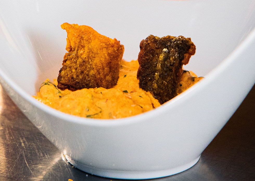 1. Mezclar la mayonesa con la paprika, el curry, la pimienta y la ralladura de naranja.