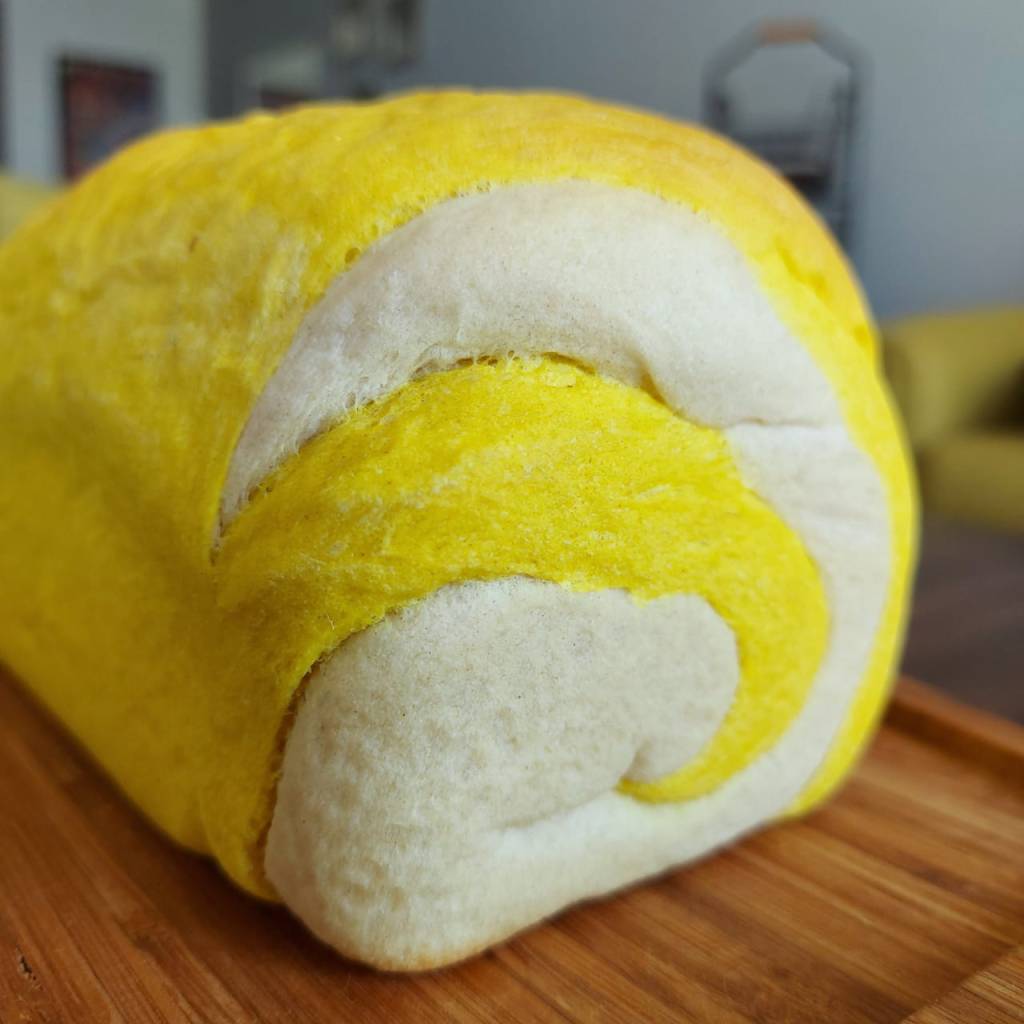 Su color favorito del mundo mundial –como dice ella– es el naranja, lo usa al vestir, en su termo, su patín; hasta su personaje favorito de caricatura es naranja. El punto es que vio el pan y le brillaron los ojitos. «¡Tante!, ¿me haces un sandwich con ese pan que parece naranja?». Pa’ pronto saqué el jamón, el queso, la mayonesa –esa la volví a guardar porque prefiere con mantequilla– y se devoró el primero de dos sandwiches con pan de cúrcuma ese día.