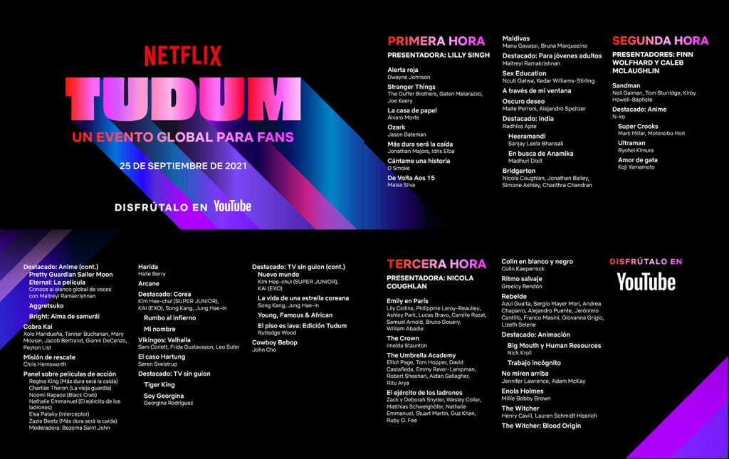 El evento virtual en vivo comenzará a las 10:00 hrs (tiempo de la Ciudad de México, CST), y se transmitirá a través de los canales de Netflix en YouTube de todo el mundo.