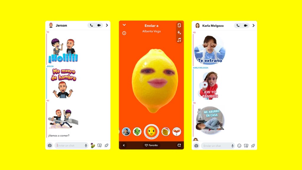 Esta app fue la primera en agregar fotos o videos cortos tomados en el momento para comunicarte en el chat. Los Snaps (sí, de ahí viene el nombre de Snapchat) se pueden decorar con emojis, subtítulos, filtros, Lentes y más.