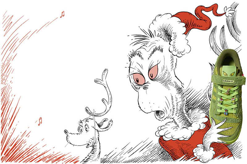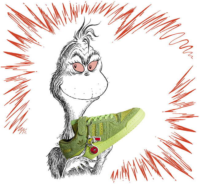 Dándole a Who-ville el toque exclusivo del Trifolio, el lanzamiento de los Forum Low de adidas Originals x The Grinch viene acompañado de una campaña que incorpora el nuevo modelo en las ilustraciones clásicas del libro original de Dr. Seuss.
