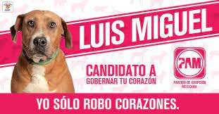 Entre los candidatos perrunos destacaban promesas divertidas y que los caninos sí pueden cumplir, por ejemplo: “Yo sólo robo corazones”, “Doy lengüetazos no mordidas”, “Por más ladridos y menos mentiras”, Moveré la cola, lo firmo y lo cumplo”, “Quiero llegar los pinos… de tu casa”, entre otras.