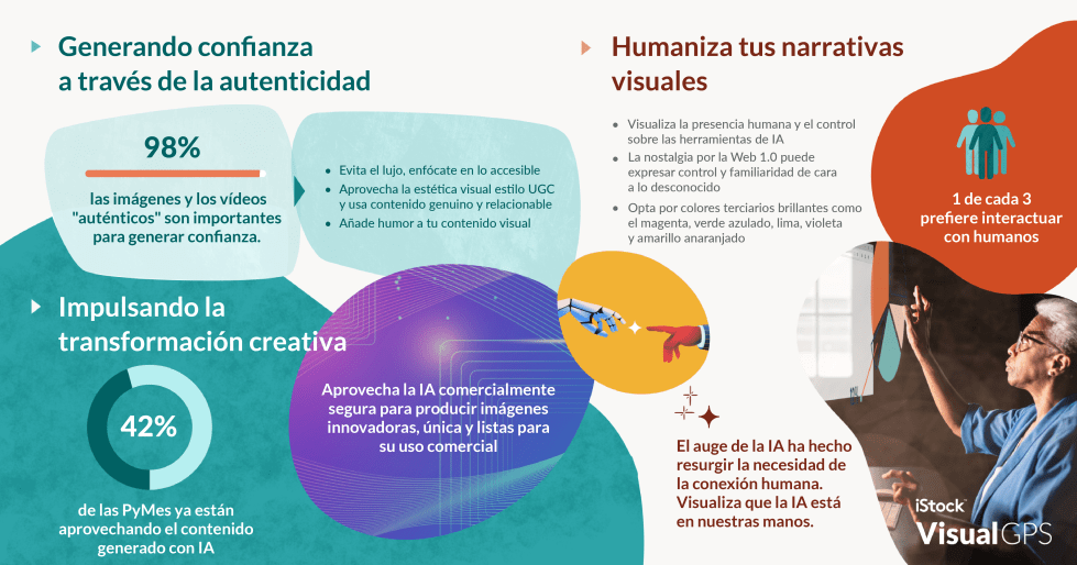 «En un escenario dominado por la IA, la manipulación de imágenes, los ‘deep fakes’ (imágenes falsas), el desborde de información y la saturación tecnológica, la autenticidad, como herramienta visual, es una vía crucial para establecer confianza entre las empresas y sus consumidores en 2024», dijo la Dra. Rebecca Swift, Vicepresidenta Senior de Contenido Creativo de iStock. «Nuestra investigación VisualGPS indica que el 98% de los consumidores están de acuerdo en que las imágenes y videos ‘auténticos’ son fundamentales para establecer confianza. Este año, las empresas deben centrarse en narrativas visuales que se sientan reales y verdaderas».