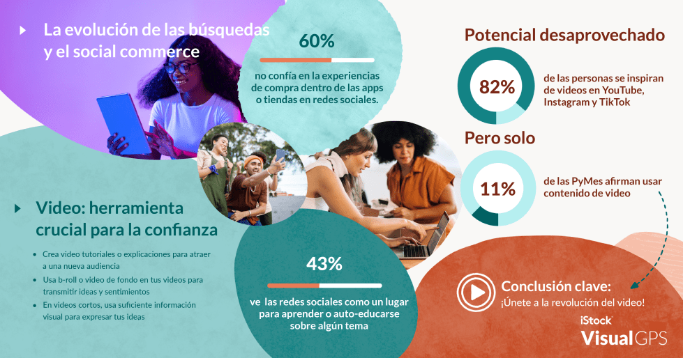 A pesar del inmenso potencial de los contenidos de video, solo el 11 % de las PyMes dice usar este tipo de formato. En cambio, un asombroso 82% de consumidores afirmó buscar inspiración en videos de plataformas como YouTube, TikTok e Instagram. El mensaje es claro y fuerte: ¿Qué esperas para empezar a usar videos en tus campañas?
