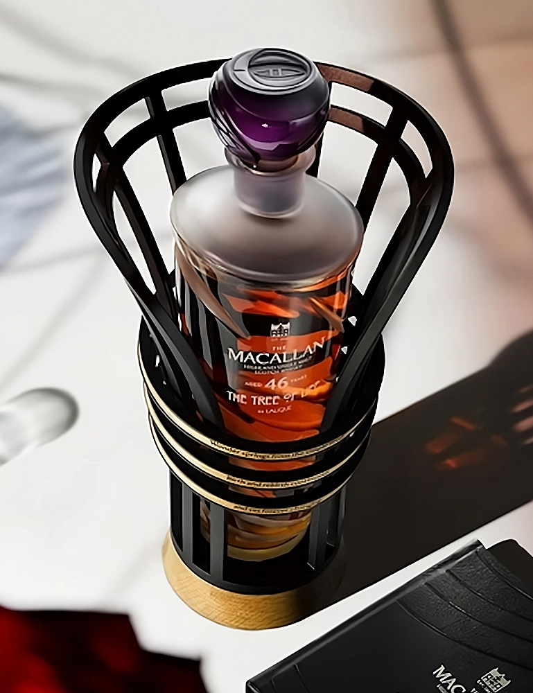 Solo existen 112 decantadores de esta expresión a nivel mundial, presentados en una pieza de cristal Lalique con un tapón en forma de rosa inspirado en The Spirit of the Rose. Una escultura envolvente complementa el diseño, evocando los delicados trabajos en metal que Mackintosh empleó en su arquitectura.